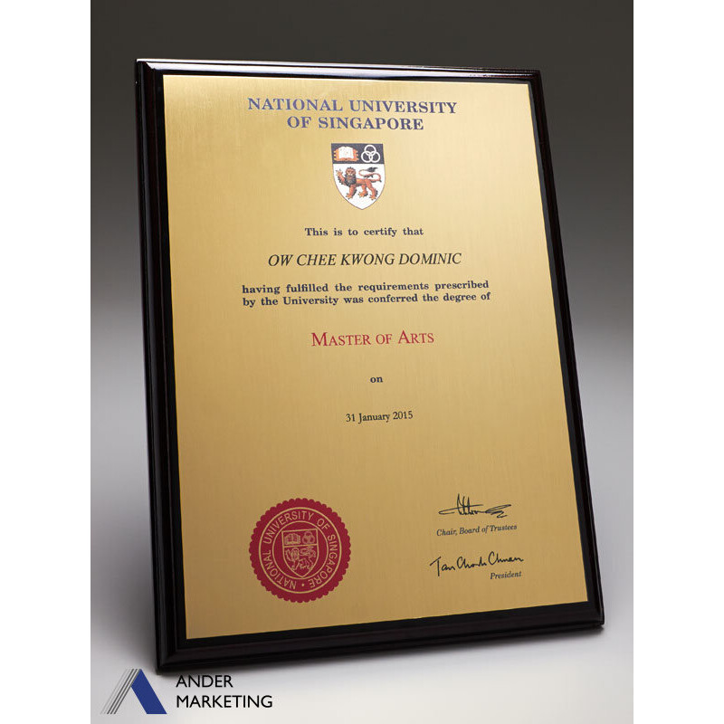 Plaque for National University of Singapore (NUS) degree.